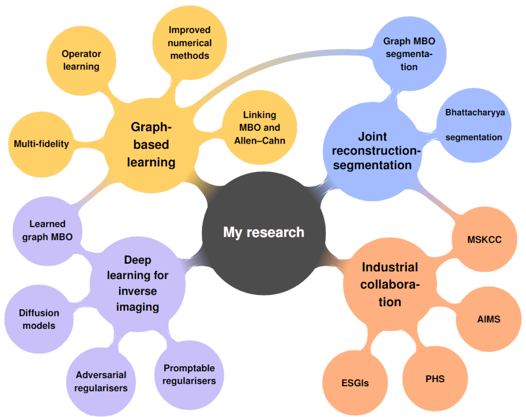 My research focuses on the intersection of applied analysis and data science, particularly image processing and machine learning. My specialism is in graph-based learning methods for image processing, e.g. for image segmentation and joint reconstruction-segmentation. See the Research page for more details.